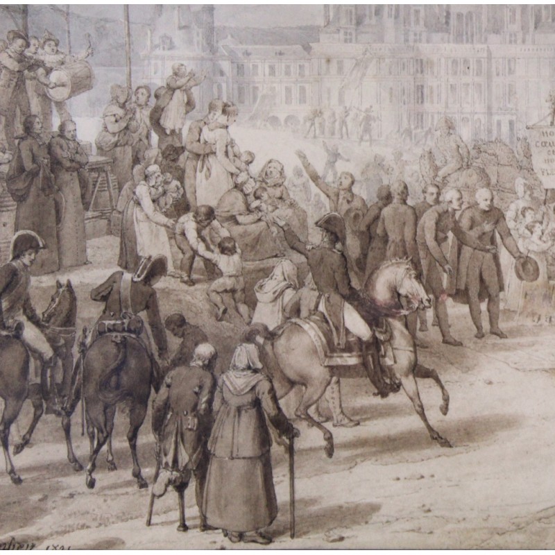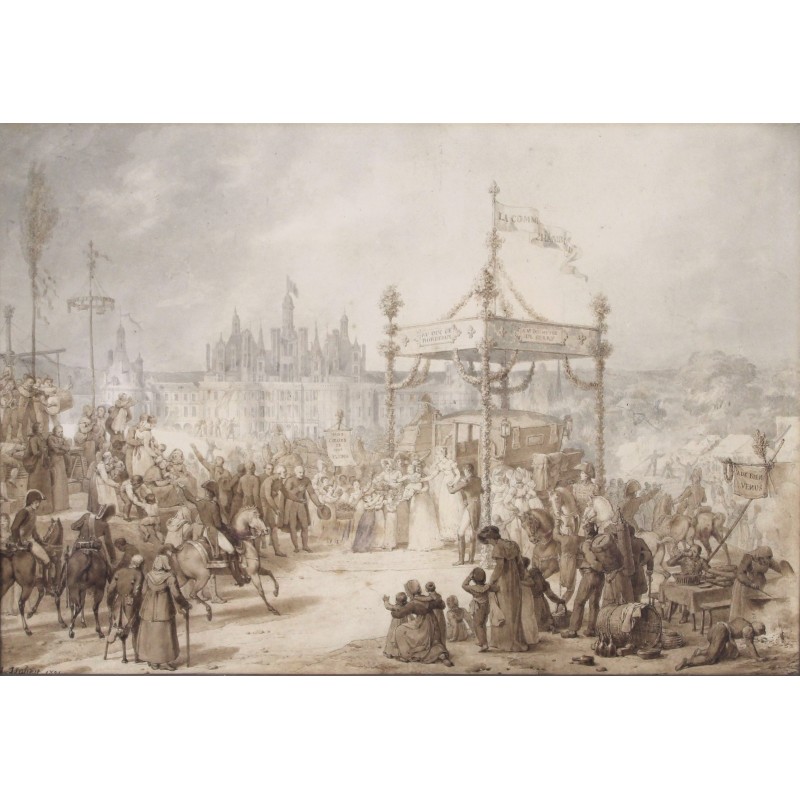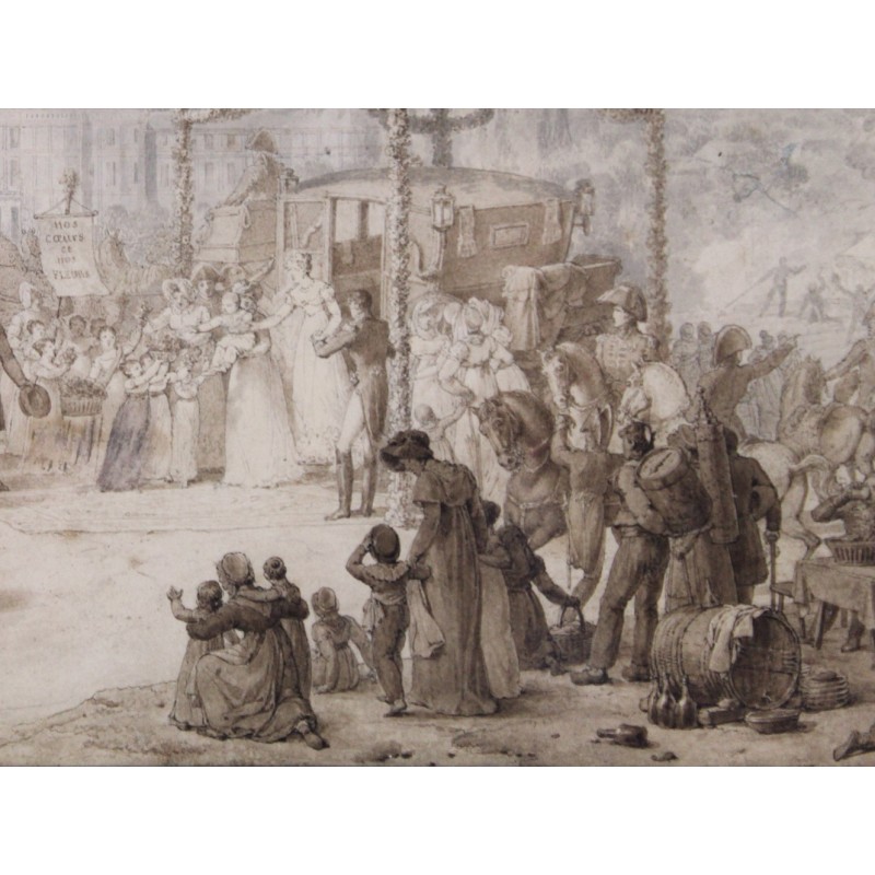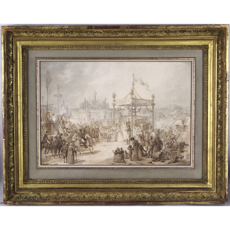 | Signé et daté à la plume et encre brune en bas à gauche J. Isabey. 1821 |